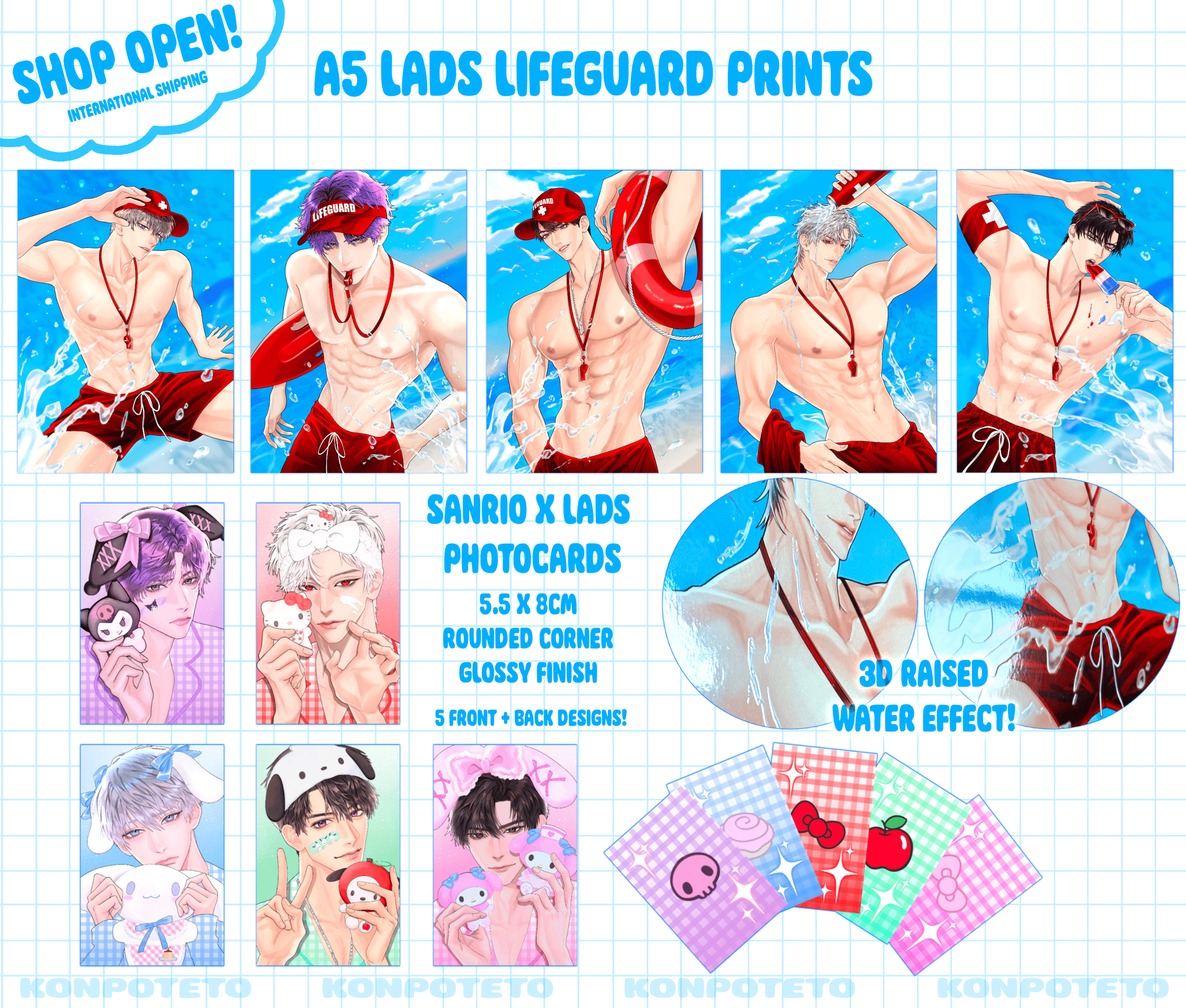 Set of 10, 5 lifeguard prints + 5 sanrio photocards